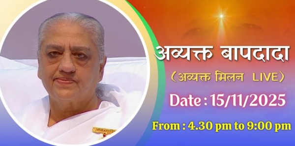 Baba Milan Baba Milan LIVE Today’s Avyakt Baba Milan 15th November 2025 Published 2 hours ago on November 14, 2025 By admin अव्यक्त बापदादा LIVE – 15/11/2025 (Saturday 4.30 PM to 9.00 PM IST) Avyakt BapDada (English) LIVE – 15/11/2025 (Saturday 4.30 PM to 9.00 PM IST) Related Topics:avyakt babababa milanBrahmakumarisbrahmakumaris livelive Don't Miss LIVE: राजयोगिनी उषा दीदी क्लास – ब्राह्मण जीवन में खुशी का पासवर्ड || Continue Reading Advertisement You may like COP30 Belem (Brazil) LIVE: राजयोगिनी उषा दीदी क्लास – ब्राह्मण जीवन में खुशी का पासवर्ड || LIVE: राजयोगी रामनाथ भाई क्लास – स्वयं का टीचर स्वयं कैसे बनें || 12/11/2025 The Uttarakhand Govt. extended a special invitation to a three-member delegation of Brahma Kumaris to welcome the Prime Minister. LIVE: राजयोगिनी निर्मला दीदी क्लास – अन्तर्मुखी सदा सुखि || 11/11/2025, 11 AM, Conference Hall मेरे ख़ज़ाना — मेरी स्थिति : BK Jayanti Didi Ji | Brahma Kumaris | 09 Nov. 2025 | 05:00 PM शुभ मुहूर्त समारोह : BK Mohini Didi | GGRC, Brahma Kumaris | 06-11-2025 | 5:00 PM LIVE BK SHIVANI, Mind-Money Management | Brahma Kumaris | 07 & 8 Nov. 2025 | स्वास्थ्य, समृद्धि और खुशी का रहस्य | B.K. E.V. Girish | Brahma Kumaris, Beed | 5-11-2025 | 10:30 Am