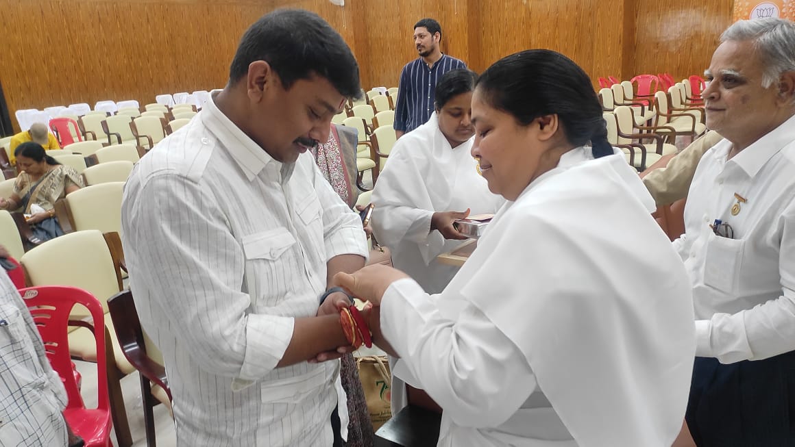 कार्यक्रम के पश्चात ब्रह्माकुमारी ईश्वरीय विश्व विद्यालय बिलासपुर की मुख्य शाखा राजयोग भवन की संचालिका बीके स्वाति दीदी एवं बीके संतोषी दीदी ने राज्य स्वास्थ्य एवं परिवार कल्याण राज्य मंत्री माननीय भ्राता प्रताप राव जाधव जी, छत्तीसगढ़ के स्वास्थ्य मंत्री माननीय भ्राता श्याम बिहारी जायसवाल जी, बिलासपुर विधायक एवं पूर्व कैबिनेट मंत्री माननीय भ्राता अमर अग्रवाल जी एवं बेलतरा विधायक माननीय भ्राता सुशांत शुक्ला जी को रक्षा सूत्र बांधकर ब्रह्माकुमारीज मुख्यालय माउंट आबू आने का निमंत्रण दिया। कार्यक्रम में बड़ी संख्या में स्वास्थ्य विभाग, शिक्षा विभाग, व्यापारी गण आदि उपस्थित थे।