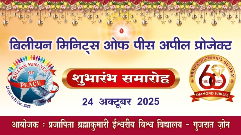 Brahma Kumaris Billion Minutes of Peace | Inauguration ceremony | Brahma Kumaris | 24 Oct. 2025 | 5:00 PM Published 4 hours ago on October 24, 2025 By admin Billion Minutes of Peace | Inauguration ceremony | Brahma Kumaris | 24 Oct. 2025 | 5:00 PM Related Topics:brahmakumaris gujaratbrahmakumaris newslive Don't Miss LIVE: दीपावली कार्यक्रम – 2025 || 90वां यज्ञ स्थापना दिवस कार्यक्रम || 21/10/2025, 10.30AM Continue Reading Advertisement You may like ब्रह्माकुमारीज़ मुख्यालय पहुंचे देशभर से राजा-महाराजाओं के वंशज Brahma Kumaris in Vijayawada have launched the “Mind Spa” सेना के सेवानिवृत्त अधिकारियों एवं सैनिकों के लिए तीन दिवसीय स्व सशक्तिकरण कार्यक्रम लोगों को नशामुक्त करने सिखा रहे आध्यात्मिक, मनोवैज्ञानिक और व्यावहारिक उपाय LIVE मूल्य आधारित समाज निर्माण की नींव | Social Service Wing | Shantivan | 10-07-2025 at 10:30am “विश्व एकता व विश्वास हेतु ध्यान” थीम का सबजोन स्तर पर प्रभावशाली शुभारंभ-Annual Theme Launching for Mira Society Russia- Santosh Didi receives “Global Leader Award” at Global Economic Summit Forum – May 2025 Education Minister of India inaugurated Educators Conference Triveni Avsar | Brahma Kumaris | Mehsana Subzone | at Visnagar | 12/01/2025 at 10:00AM