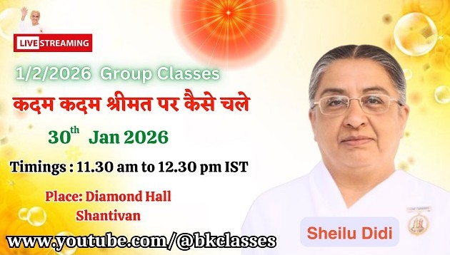 LIVE: राजयोगिनी शीलू दीदी क्लास – कदम कदम श्रीमत पर कैसे चले || 30/1/2026, 11.30 AM, Diamond Hall
