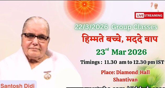 LIVE: राजयोगिनी संतोष दीदी क्लास – हिम्मते बच्चे, मददे बाप || 23/3/2026, 11.30 AM, Diamond Hall