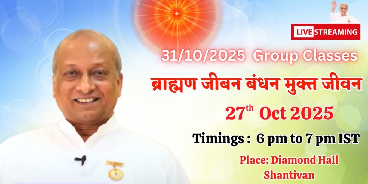 BK Ramnath Bhai LIVE: रामनाथ भाई क्लास – ब्राह्मण जीबन बंधन मुक्त जीवन || 27/10/2025, 6 PM Published 6 hours ago on October 27, 2025 By admin LIVE: रामनाथ भाई क्लास – ब्राह्मण जीबन बंधन मुक्त जीवन || 27/10/2025, 6 PM, Diamond Hall Related Topics:BK Ramnathbrahmakumaris Classes Don't Miss LIVE: रामनाथ भाई क्लास – स्वभाव, संस्कार परिवर्तन -18/3/2025, 10.30 AM, Diamond Hall Continue Reading Advertisement You may like LIVE: रामनाथ भाई क्लास – ब्राह्मण जीवन में पढ़ाई एवं दैवी गुण || 15/1/2025, 10.30 AM || Diamond Hall LIVE BK Ramnath Bhai | Jama ka Khaata Badane ki Vidhi(जमा का खाता बढ़ाने की विधि)| May 19 | 11am- 12 noon LIVE 23 Sept 03.00pm : Virat Sant Sammelan (Rajim C.G ) LIVE : वर्तमान परिस्थितियों में आध्यात्म से समाधान- Gyansarovar | 22nd May 2023| Religious Wing 27-02-2023, Events from Shantivan LIVE 03-12-22, 10.30am: गीता जयंती सम्मलेन -शांतिवन LIVE 12-16 August : Gyan Sarovar Bhatti Classes 2022 Animation Movie: Didi Manmohini – साथी और साक्षी रहने की कहानी Ruhani Royalty Ki Nishaniya I BK Jayanti Behn I Gyan Sarovar I Mount Abu (Raj)