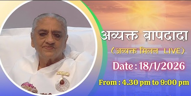 Baba Milan LIVE Today’s 18 Jan 2026, Avyakt Baba Milan from Shantivan Published 3 weeks ago on January 17, 2026 By admin LIVE: राजयोगी मृत्युंजय भाई क्लास – शुभ चिंतक, शुभ चिंतन || 18/1/2026, 10 AM LIVE: राजयोगी करुणा भाई क्लास – बाबा से प्रीत की रीति || 18/1/2026, 11 AM, Diamond Hall LIVE Today’s 18 Jan 2026, Avyakt Baba Milan from Shantivan Related Topics:baba milanBrahmakumarislive Up Next Live: संगम: “आध्यात्मिक प्रवास मिलन ” Geeta Didi Ji Anjar Kutch (Guj)| 25 Jan. 2026 | 03.00pm Don't Miss LIVE : 18 Jan. अव्यक्त स्मृति दिवस | Live From Madhuban | Brahma Kumairs | 18 Jan. 2026 Continue Reading Advertisement You may like Rajyogi Mohan Singhal Bhai Class – Balance, Blessing, Blissful LIVE Today’s 1st Feb 2026, Avyakt Baba Milan from Shantivan Live: Opening Ceremony of Brahma Kumaris, Trivandrum | BK Jayanti Didi | 29 Jan. 2026 | 09:00 AM LIVE: राजयोगिनी कृति दीदी क्लास – यथार्थ योग और उसका प्रयोग || 29/1/2026, 10.30 AM, Diamond Hall Live:- सम्मान समारोह | Sammaan Samaaroh | Brahma Kumaris, Palakad | 27 Jan. 2026 9:00 AM LIVE 🔴: 26 Jan. गणतंत्र दिवस की शुभकामनाएं | Live From Shantivan | Brahma Kumairs | 26 Jan. 2026 Live: संगम: गौरवशाली वृद्धावस्था और सम्मान का जीवन।, Anjar Kutch (Guj)| 25 Jan. 2026 | 10:00 AM Live : Golden Jubilee Celebration | Brahma Kumaris Madurai | 25-01-2026 | 9:00 AM समय से पहले स्व-परिवर्तन रामनाथ भाई जी डायमंड हॉल