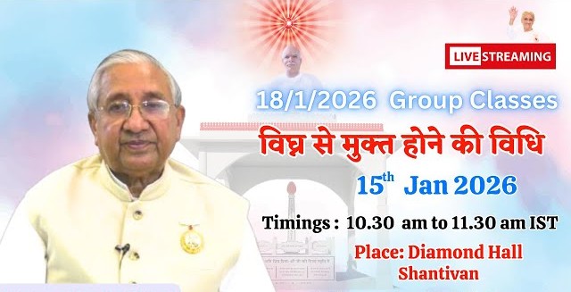 BK Mohan Singhal LIVE: राजयोगी मोहन सिंघल भाई क्लास – विघ्न से मुक्त होने की विधि || 15/1/2026, 10.30 AM Published 6 hours ago on January 15, 2026 By admin LIVE: राजयोगी मोहन सिंघल भाई क्लास – विघ्न से मुक्त होने की विधि || 15/1/2026, 10.30 AM Related Topics:BK mohan singhalBrahmakumarislive Don't Miss LIVE: रामनाथ भाई क्लास – स्वभाव, संस्कार परिवर्तन -18/3/2025, 10.30 AM, Diamond Hall Continue Reading Advertisement You may like Live : नई सोच, नया जीवन, नई शुरुआत – BK Shivani I Brahma Kumaris Sidhpur I 16 Jan. 2026 I 4:30 PM Live : सदा स्वस्थ और खुशहाल जीवन की कला – BK Shivani I Brahma Kumaris, Himmat Nagar | 15 Jan. 4:30pm LIVE: राजयोगिनी संतोष दीदी क्लास – सदा समर्थ कैसे बने || 15/1/2026, 6 PM, Diamond Hall Live: Celebration Compliment of 78 – BK Mrutyunjaya Bhai | Brahma Kumaris Bangalore | 08 Jan. 2026 नये वर्ष की नई उमंग – BK Raju Bhai Ji | Brahma Kumaris Bhinmal | 06 Jan.2025 | 10:00 AM Live: ब्रह्मा बाप समान बनने का प्रैक्टिकल प्लान – BK Suraj Bhai Ji | GGRC | 03 Jan. 10 am LIVE: आदरणीय राजयोगी करुणा भाई जी 87 वां जन्मोत्सव || 2/1/2026, 11 AM, Diamond Hall Live: वाह ज़िन्दगी वाह – BK E.V. Girish Bhai Ji | Brahma Kumaris, LIVE Today’s 31st Dec 2025, Avyakt Baba Milan from Shantivan