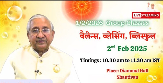 BK Mohan Singhal Rajyogi Mohan Singhal Bhai Class – Balance, Blessing, Blissful Published 2 hours ago on February 2, 2026 By admin LIVE: राजयोगी मोहन सिंघल भाई क्लास – बैलेन्स, ब्लेसिंग, ब्लिस्फुल || 2/2/2026, 10.30 AM,Diamond Hall Rajyogi Mohan Singhal Bhai Class – Balance, Blessing, Blissful Related Topics:BK mohan singhalBrahmakumarislive Don't Miss LIVE: राजयोगी मोहन सिंघल भाई क्लास – विघ्न से मुक्त होने की विधि || 15/1/2026, 10.30 AM Continue Reading Advertisement You may like Live: Opening Ceremony of Brahma Kumaris, Trivandrum | BK Jayanti Didi | 29 Jan. 2026 | 09:00 AM LIVE: राजयोगिनी कृति दीदी क्लास – यथार्थ योग और उसका प्रयोग || 29/1/2026, 10.30 AM, Diamond Hall Live:- सम्मान समारोह | Sammaan Samaaroh | Brahma Kumaris, Palakad | 27 Jan. 2026 9:00 AM LIVE 🔴: 26 Jan. गणतंत्र दिवस की शुभकामनाएं | Live From Shantivan | Brahma Kumairs | 26 Jan. 2026 Live: संगम: गौरवशाली वृद्धावस्था और सम्मान का जीवन।, Anjar Kutch (Guj)| 25 Jan. 2026 | 10:00 AM Live : Golden Jubilee Celebration | Brahma Kumaris Madurai | 25-01-2026 | 9:00 AM समय से पहले स्व-परिवर्तन रामनाथ भाई जी डायमंड हॉल LIVE Today’s 18 Jan 2026, Avyakt Baba Milan from Shantivan LIVE : 18 Jan. अव्यक्त स्मृति दिवस | Live From Madhuban | Brahma Kumairs | 18 Jan. 2026
