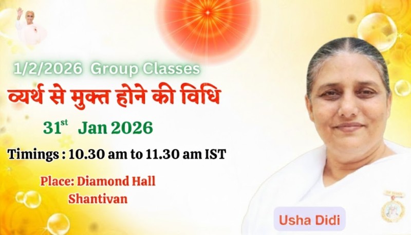 LIVE: राजयोगिनी उषा दीदी क्लास – व्यर्थ से मुक्त होने की विधि || 31/1/2026, 10.30 AM,